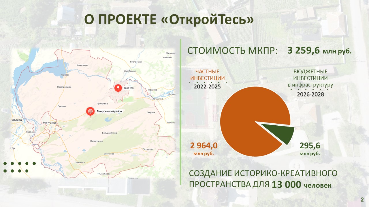 МКПР-сохранение, восстановление, наращивание и соединение человеческого, культурного и природного потенциала села Тесь для повышения привлекательности жизни и отдыха в сельской местности через создание принципиально нового формата сельского образа жизни, делающего Тесь узнаваемой в Красноярском крае и за его пределами