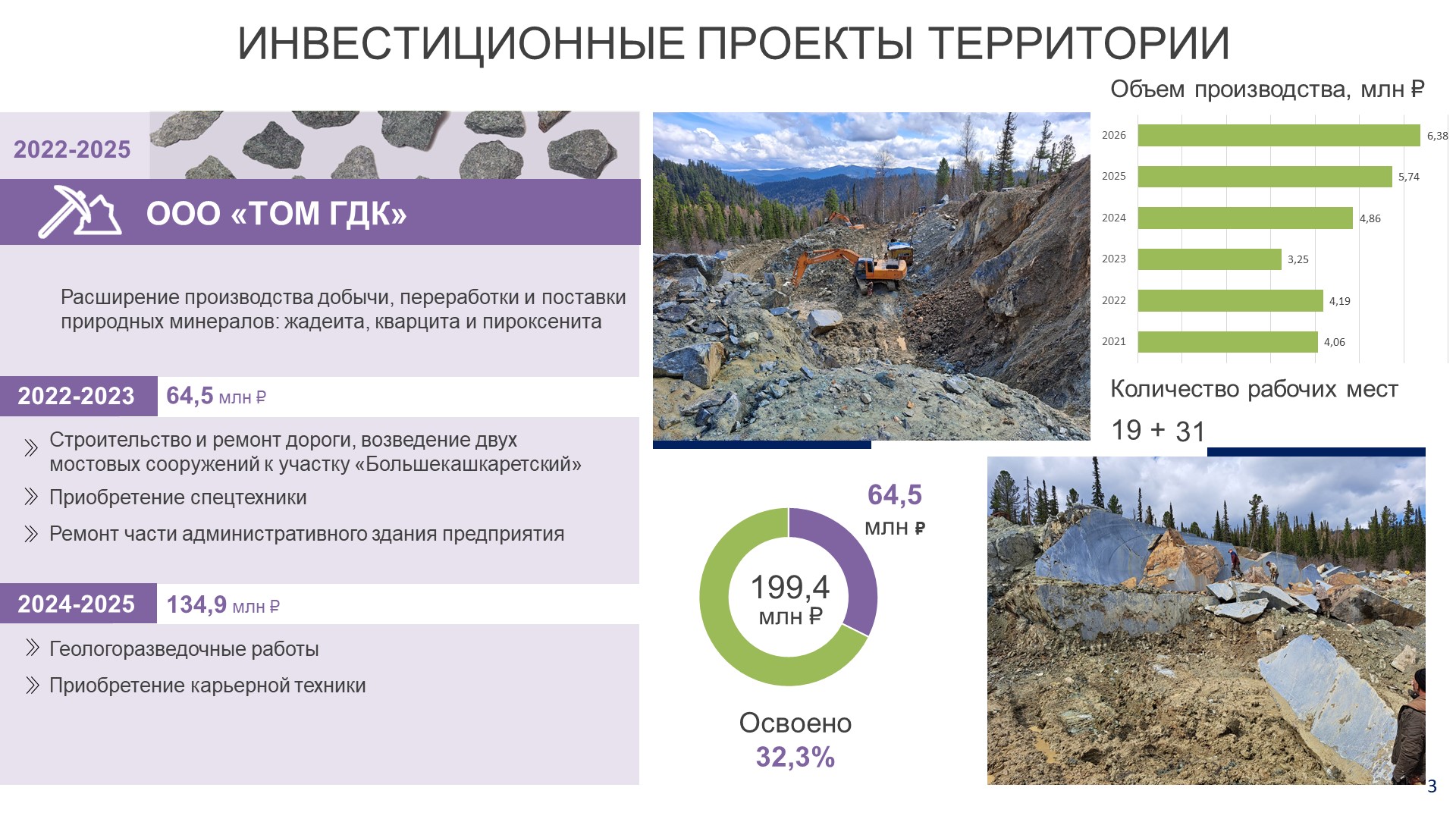 1. Расширение производства добычи, переработки и поставки природных минералов: жадеита, кварцита и пироксенита (ООО «ТОМ ГДК»)