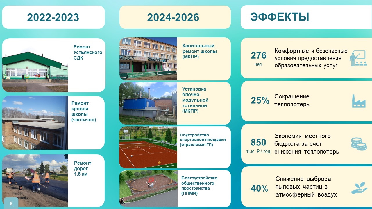 - повышение качества предоставления культурно-досуговых услуг за счет выведения котельной из здания сельского дома культуры